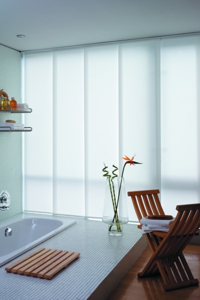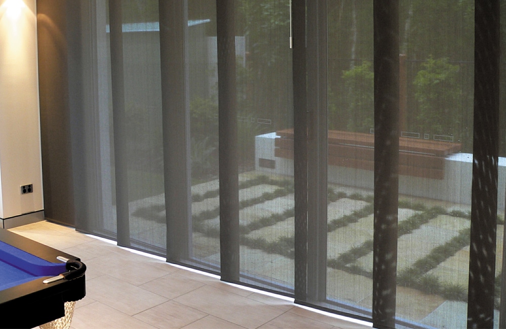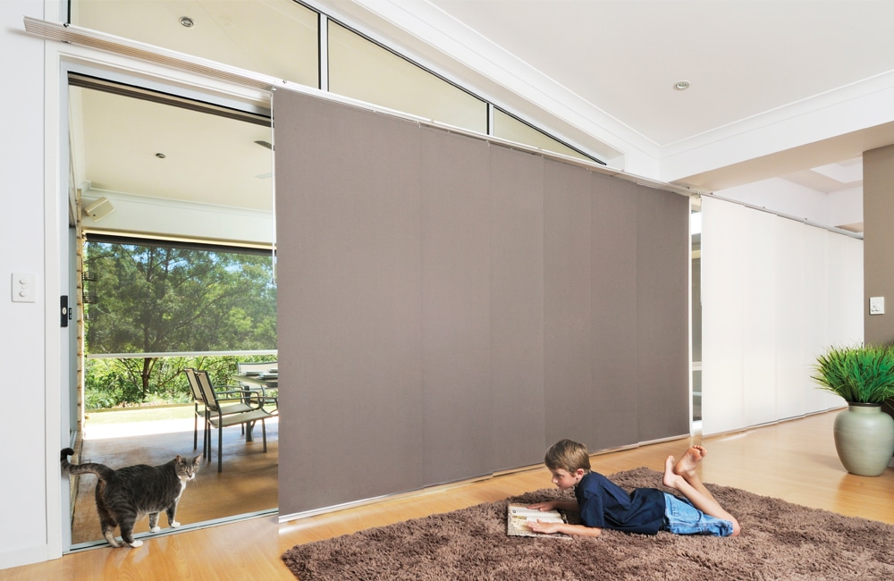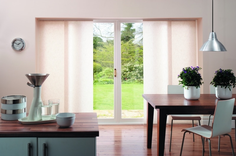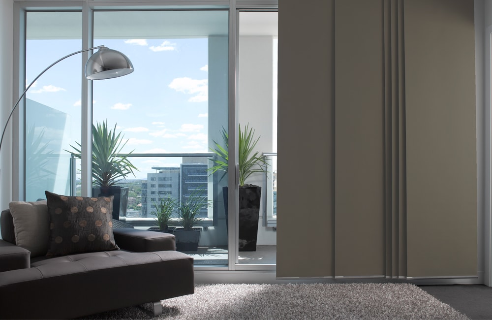 Panel blinds or panel glides combine the warmth and privacy of a curtain or drape, while providing a no-fuss, modern alternative to the classic vertical blind. The panel blind is where fashion meets function. The larger width panels create a contemporary look, and are perfect for large glass areas and sliding doors. Like our vertical blinds, this design will also gather very little dust or pet dander.